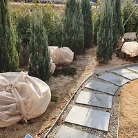 - 흙정리, 현무암 판석, 전지 마무리 등